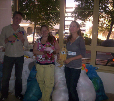 מתנדבים של דובוני החלמה במיון בבית חולים ספרא לילדים בתל השומר